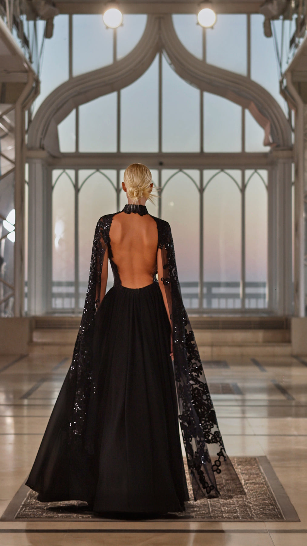 Elevate your evening with this stunning Edward Arsouni creation, a luxurious long dress that seamlessly blends sophistication with modern elegance. The high neckline and flowing long sleeves feature exquisite lace detailing that frames your silhouette beautifully, while delicate sequin accents add a touch of glamour and sparkle. The dramatic open back design creates an unforgettable statement, perfect for those who appreciate couture craftsmanship. Crafted from premium materials, this dress embodies refined luxury and is designed to make you feel confident and radiant at any special occasion. A true investment piece that celebrates your unique style.
