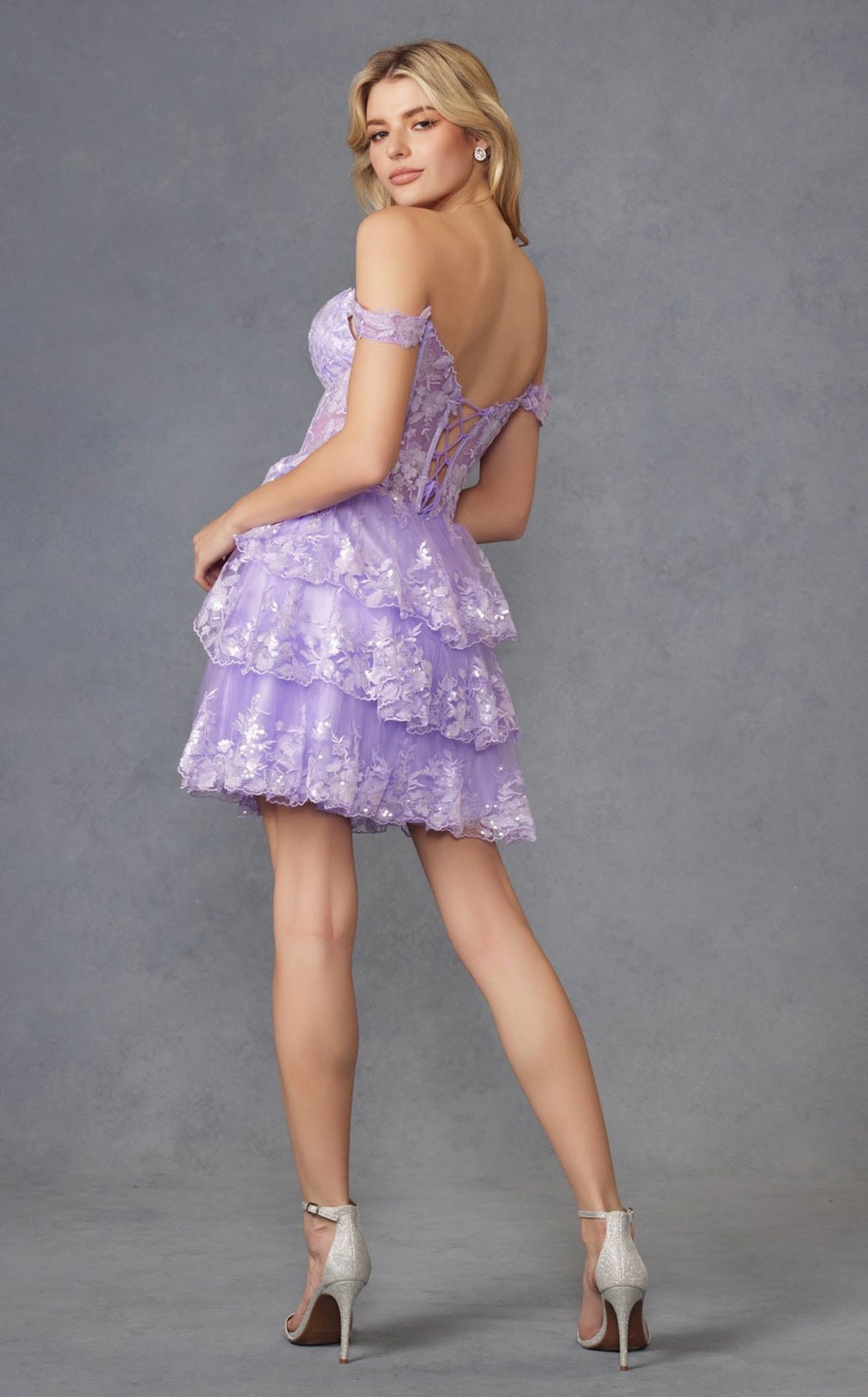 Make a memorable entrance at homecoming in the Juliet JT920K Dress. This stunning sleeveless short dress showcases a romantic sweetheart neckline and graceful off-shoulder silhouette that highlights your shoulders beautifully. The daring open back design sets it apart, giving you that show-stopping moment you deserve. Perfect for dancing the night away, this unique piece combines sophistication with youthful charm. Feel confident, feel special, feel like yourself in a dress designed to celebrate who you are.