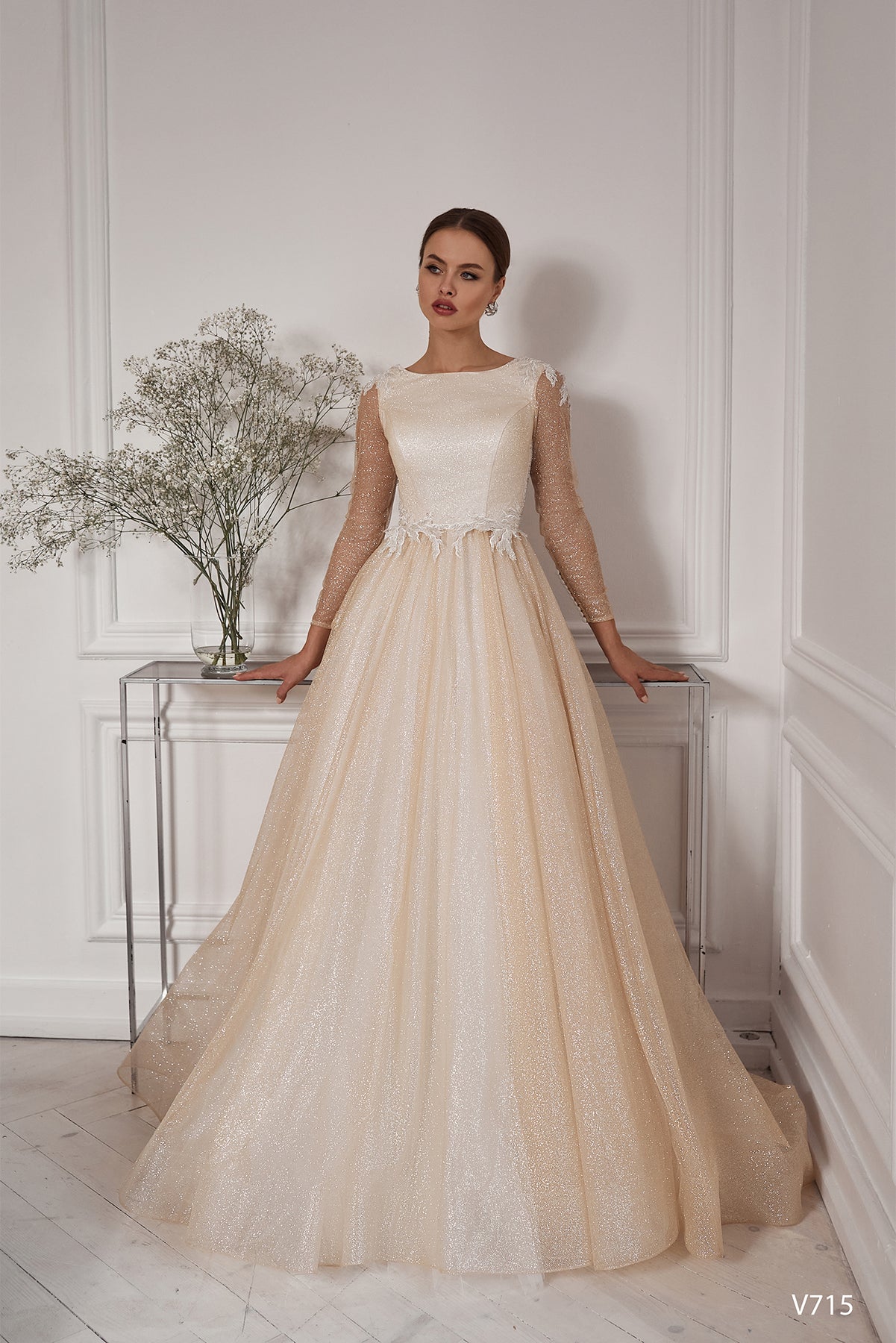 Introducing the Vissaria v715 Dress—a stunning bridal gown designed for the modern bride. This elegant piece features a graceful long-sleeve silhouette with a sophisticated straight-across neckline that frames the shoulders beautifully. The showstopping open back creates an alluring focal point, perfect for making a memorable entrance. Crafted with refined details and premium construction, this dress celebrates your special day with timeless elegance and contemporary style. Whether you're walking down the aisle or celebrating at your reception, the Vissaria v715 delivers the confidence and grace every bride deserves.
