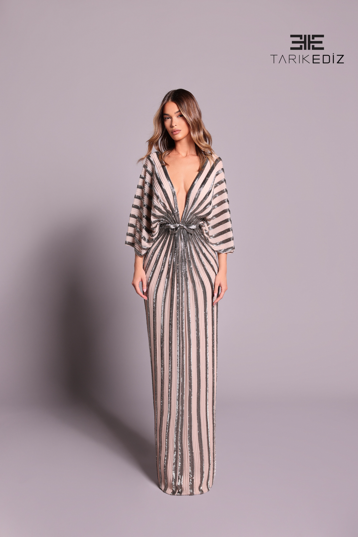 Elevate your style with the Tarik Ediz 99043 Dress, a playful blend of elegance and charm. Featuring a flattering V-neck and long sleeves, this long beaded dress dazzles with a unique open back design. Perfect for turning heads, its cute yet sophisticated silhouette makes every occasion feel special. Step into standout glamour with this one-of-a-kind piece that combines timeless grace with a touch of fun.