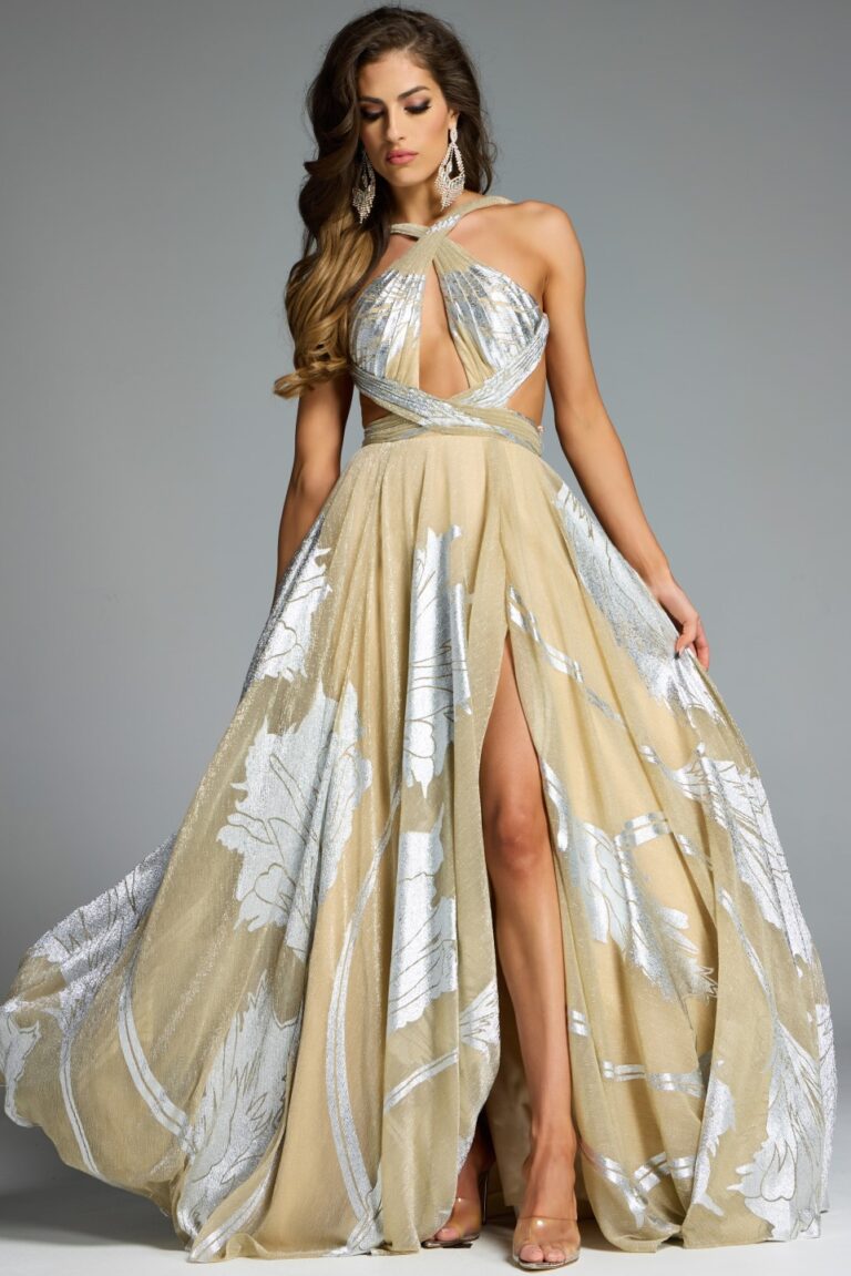 Effortlessly exude confidence and sophistication in the Jovani 44421 Dress. With its halter neckline, open back, and high slit, this sleeveless dress is perfect for any formal occasion. Showcasing your curves while still maintaining a timeless elegance, this dress is guaranteed to make a statement.