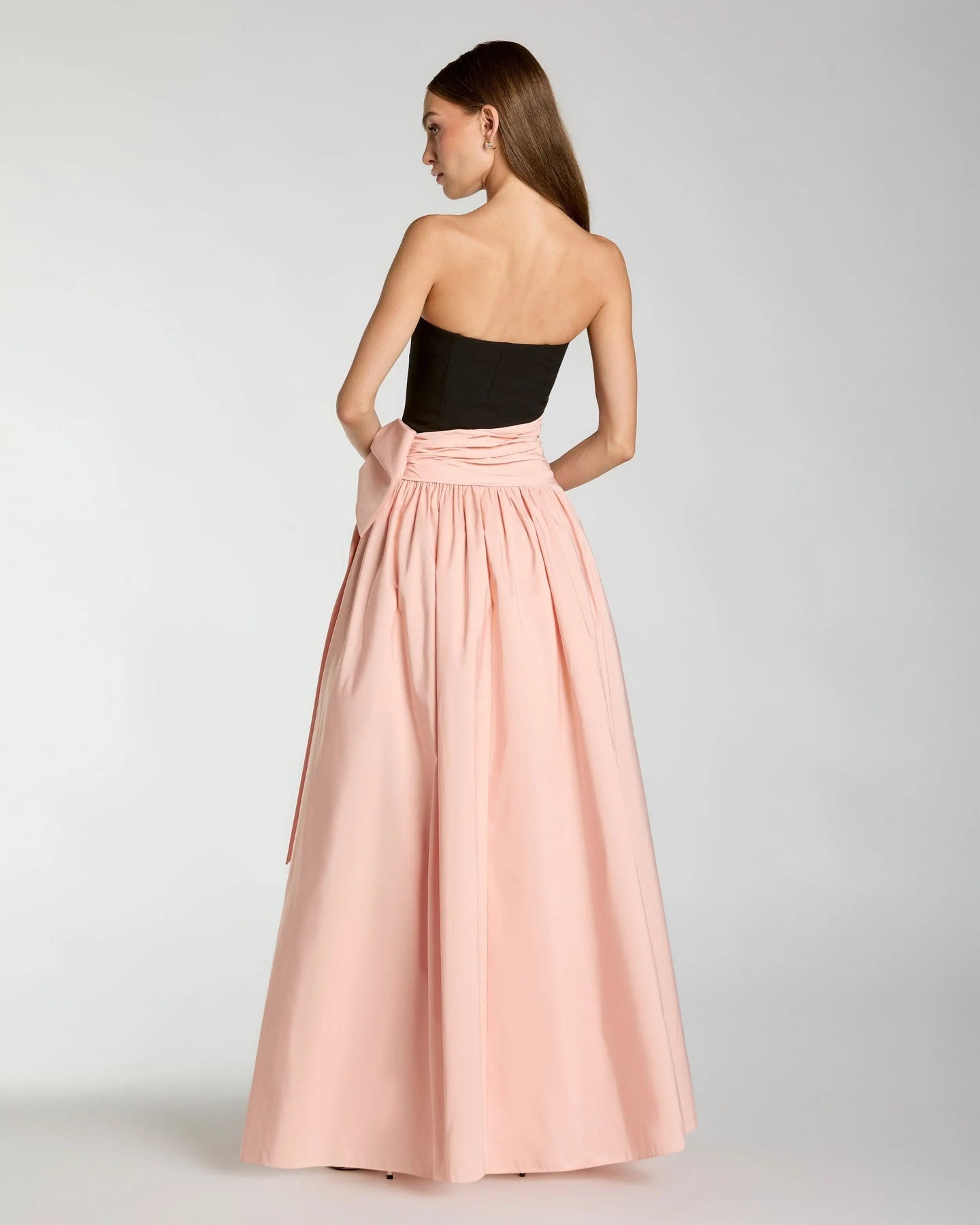 - Dramatic oversized bow detail at the waist