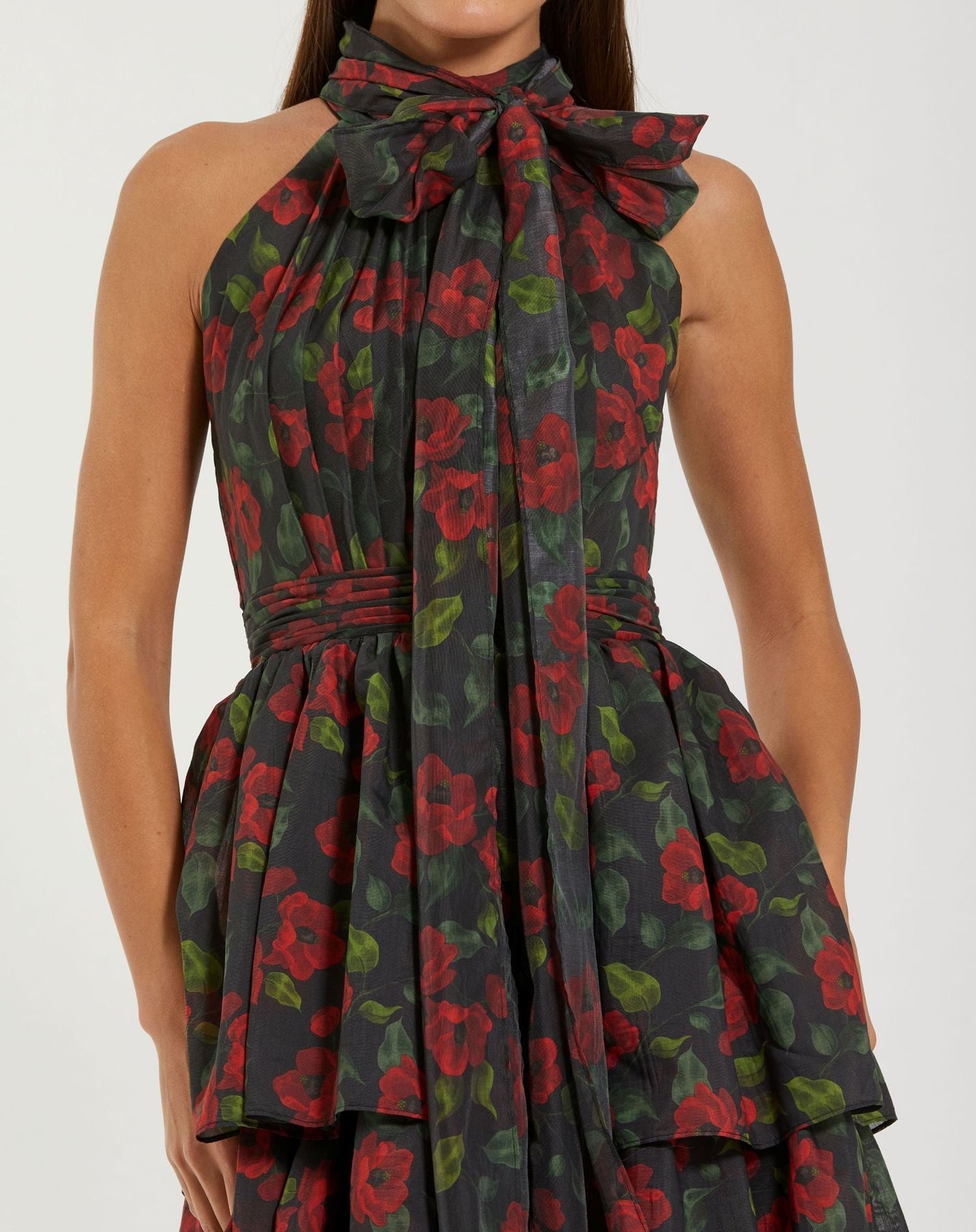 • Floral-printed chiffon fabric (100% polyester)