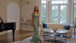 Get ready to stun in the mv1351 fit and flare gown! With its figure-flattering portrait neckline, pleated waist drapes, and sparkling crystal beaded accents, this dress is sure to turn heads. Perfect for any special occasion, you'll be the center of attention in this unique and elegant piece.
