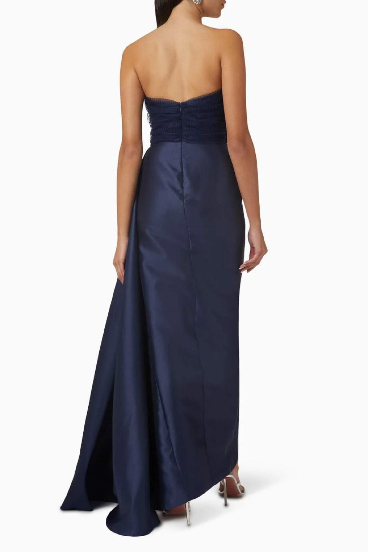 Get ready to make a statement at any event with our NICOLE BAKTI 7136 Dress. This strapless tulle and Mikado fabric gown exudes elegance and sophistication. Its delicate design adds a touch of romantic charm while the luxurious fabric ensures a modern and stylish look. Perfect for formal occasions, this dress will have you turning heads all night long.