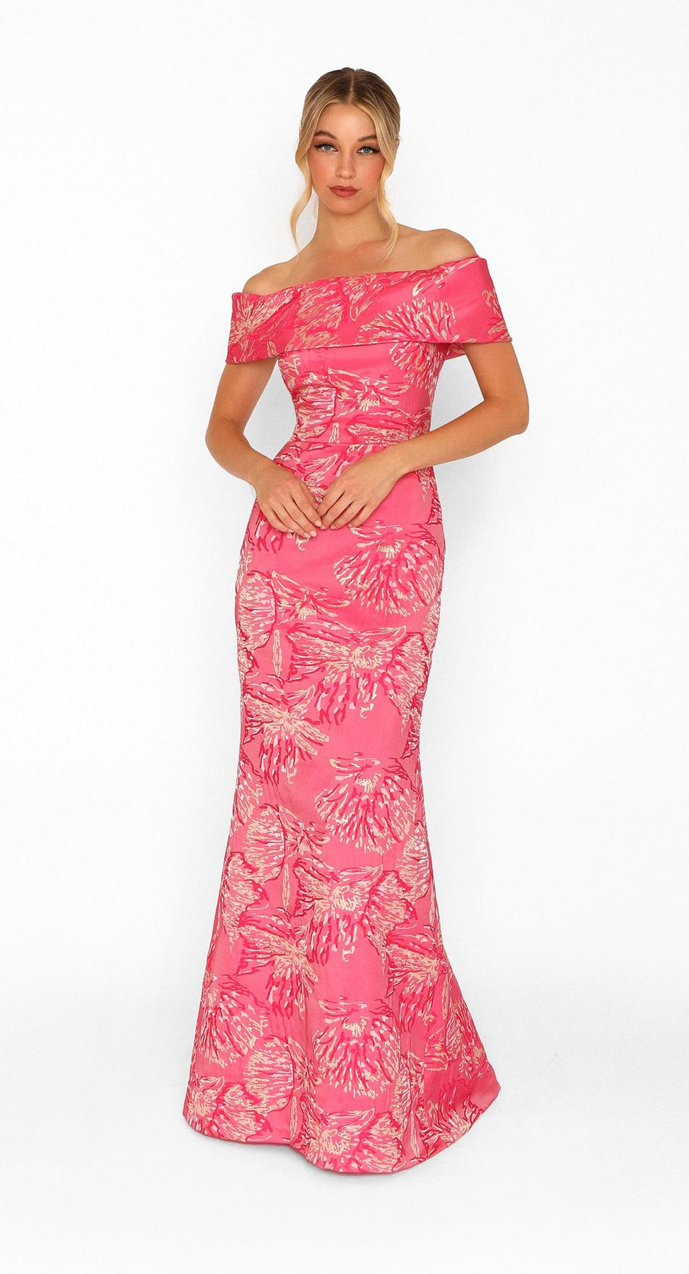 Turn heads with the NICOLE BAKTI 7153 Dress! The off shoulder design adds a touch of flirtatiousness, while the metallic jacquard fabric adds a glamorous sparkle. Perfect for any special occasion, this gown will make you feel like the star of the night. Shine on!
