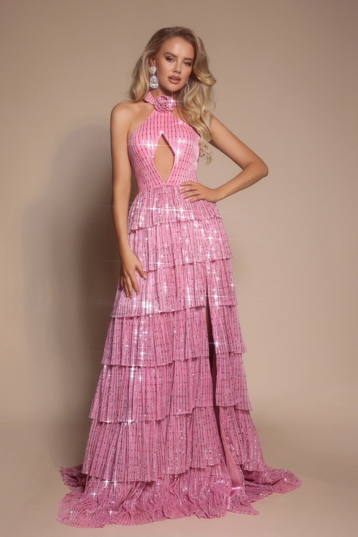 Step into the spotlight with this stunning long dress designed to turn heads. Featuring a daring high slit and a sleek sleeveless cut, it celebrates your confident spirit. Delicate beading adds a touch of sparkling glamour, while the open back brings an unexpected, flirty twist. Perfect for evening soirées or special occasions, this elegant dress blends sophistication with playful charm for a look that’s all you.