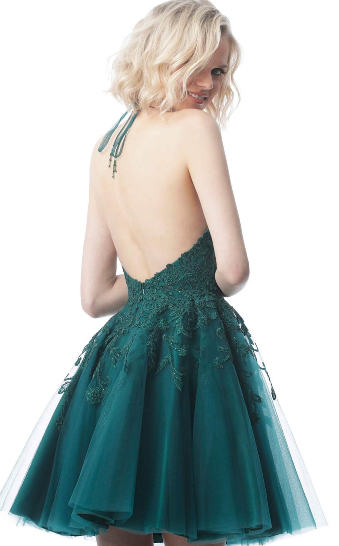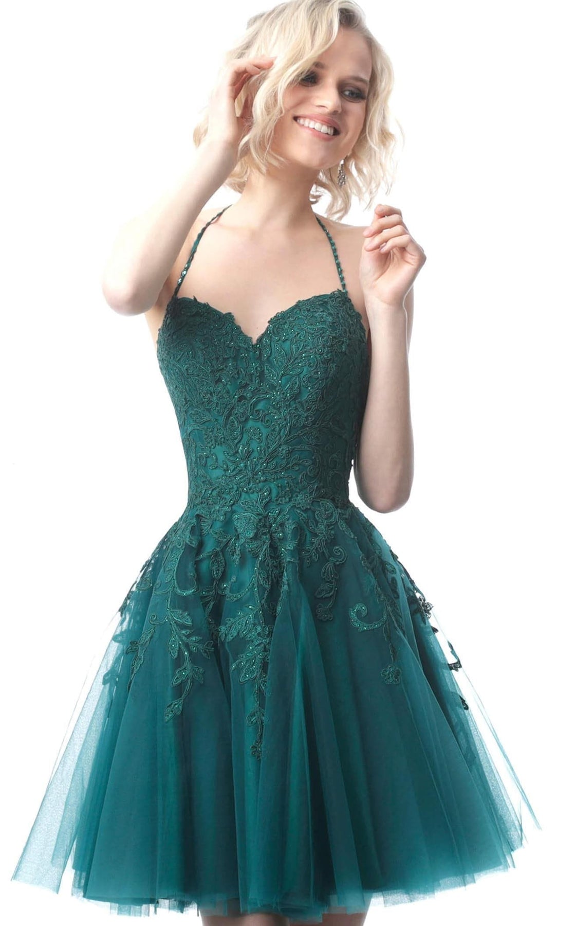 A captivating creation from JVN By Jovani, this beautifully designed short dress features a sweetheart neckline with beaded halter straps. The fitted sleeveless bodice is accentuated with elegant tonal floral appliques all over and trails down to the A-line silhouette tulle skirt. This short flowy skirt sways elegantly to the mid-thigh hem for a fabulous look.