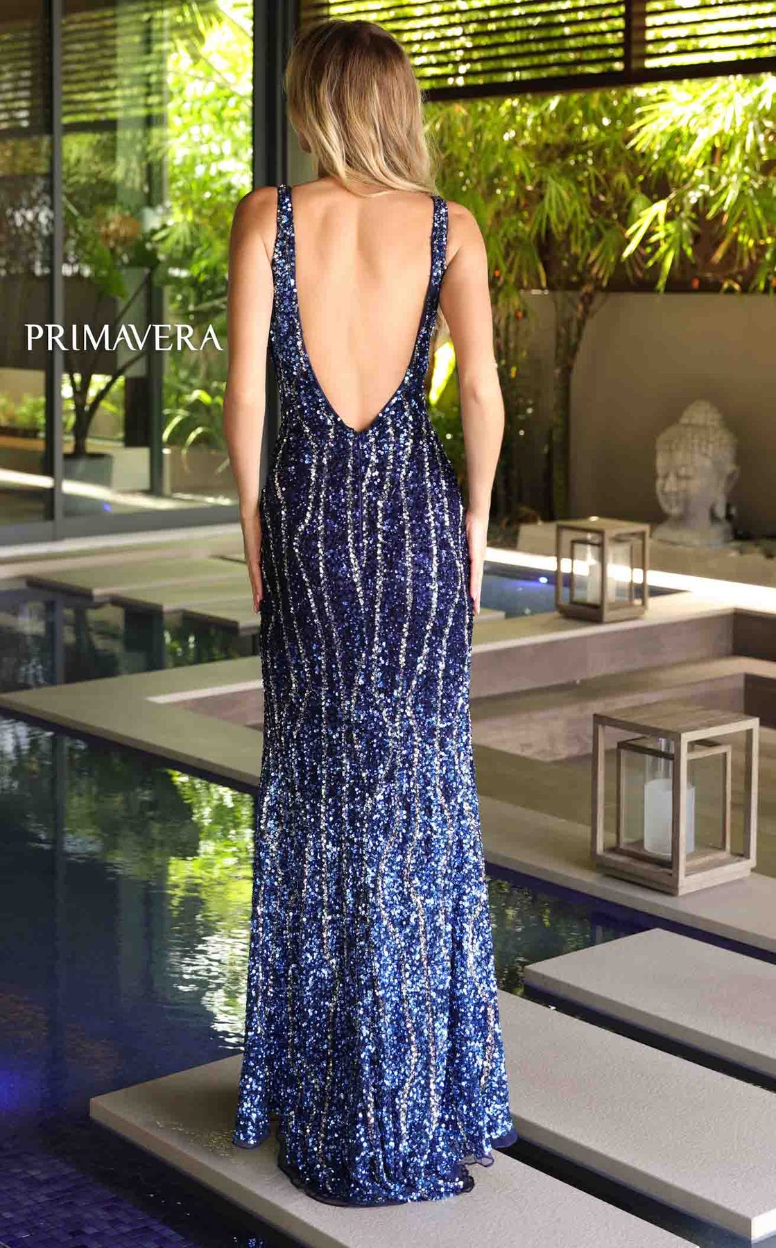 Dance the night away in the Primavera 4103 Dress! With its V-cut neckline, sleeveless design, and sultry slit, you'll confidently turn heads at prom or any evening event. The open low back adds a touch of elegance and showcases the unique, beaded design of this special dress. Get ready to stand out in style!