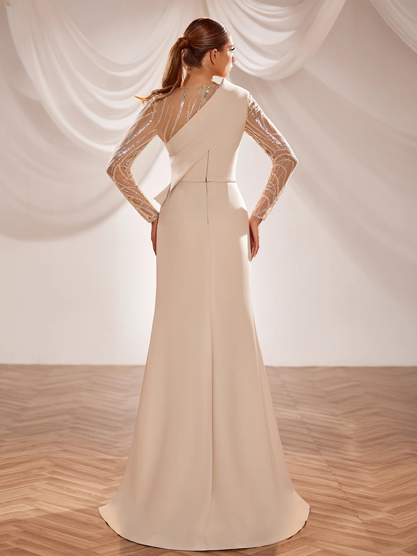 Slip into pure elegance with the Reverie Couture SS239—a blush crepe gown that defies convention. The asymmetric silhouette creates an enchanting, one-of-a-kind look that catches light and turns heads. Crafted from luxurious crepe fabric, this dress drapes beautifully while maintaining its shape, making it perfect for special occasions where you want to feel absolutely magical. Whether you're attending a gala or making a grand entrance, this dreamy piece transforms any moment into something unforgettable.