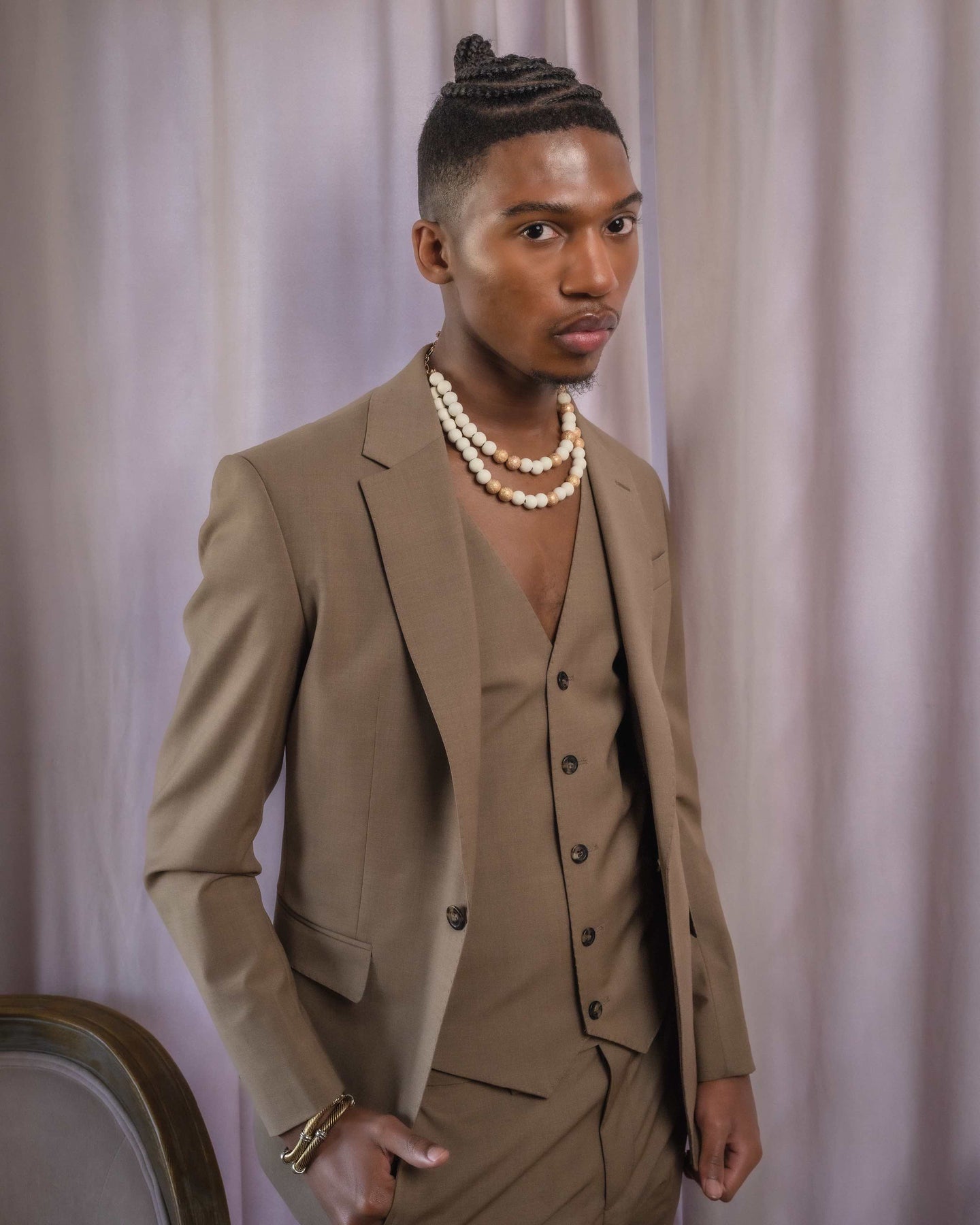 The Luxor Desert Beige suit is the epitome of understated elegance. The warm beige tone brings a touch of warmth to any ensemble, making it an ideal choice for Formal Events or Daily Wear. The One-Button Jacket and intricate Pick Stitching adds a touch of sophistication to give it a refined look. Gender-neutral and perfect for Weddings, Proms, and any Formal Event, the Luxor Desert Beige suit is the perfect way to elevate your style.