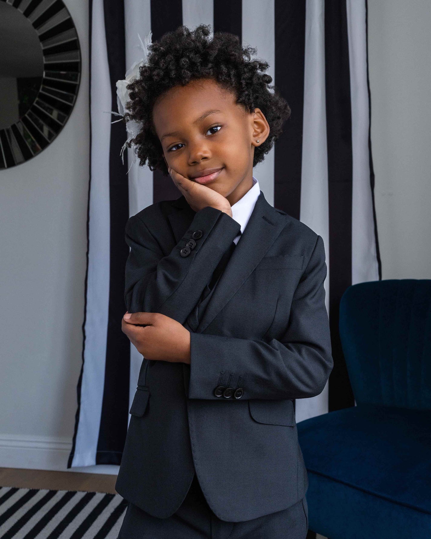 The Luxor Kem Black Kids suit has a black hue which displays timeless elegance, making it the perfect choice for Ring-bearers, Weddings or any Formal Occasion.
