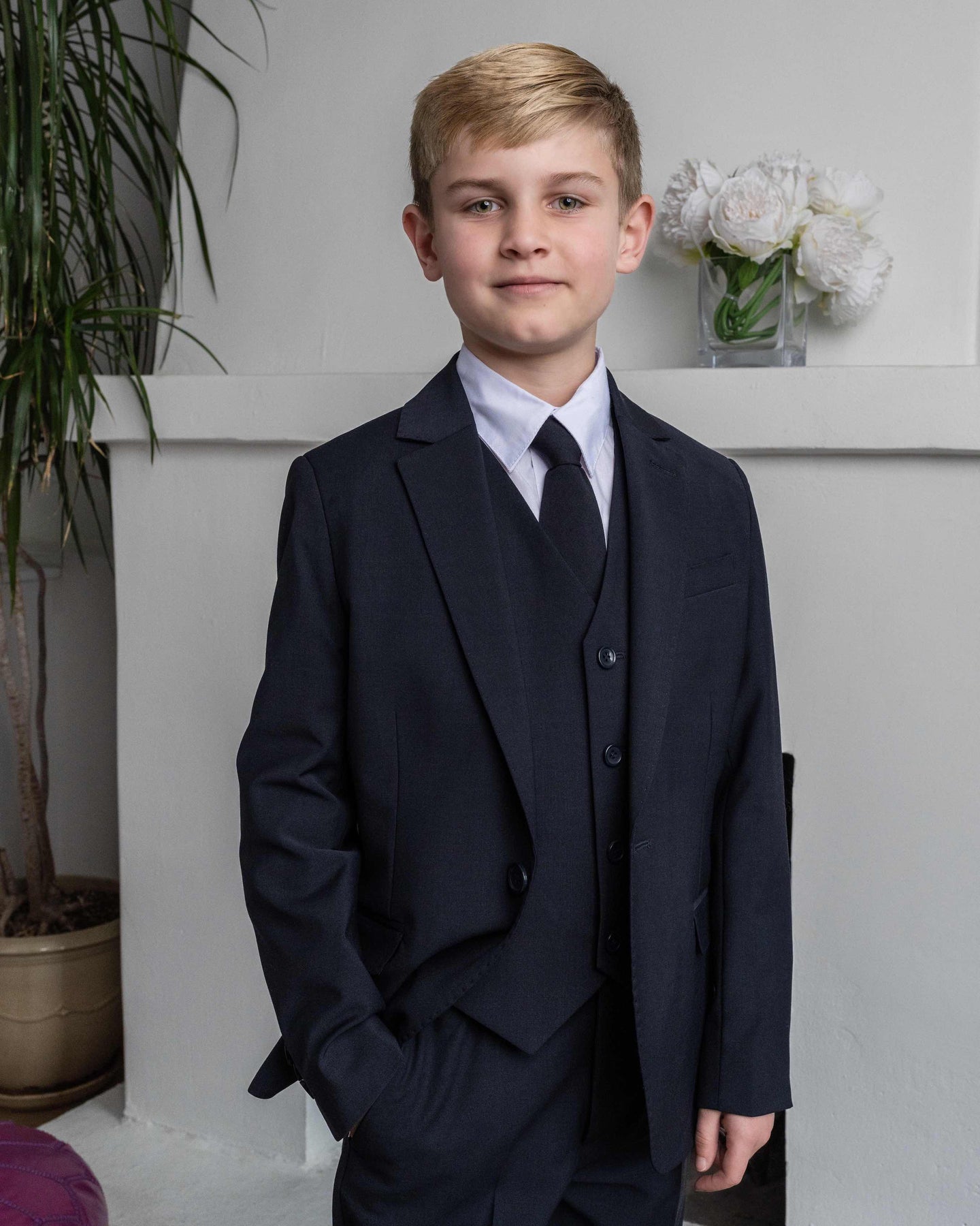The Luxor Midnight Navy Kids suit emits a rich deep blue hue, making it the perfect choice for Ring-bearers, Weddings or any Formal Occasion.