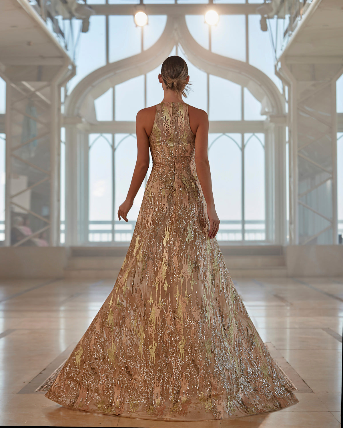 Elevate your evening elegance with the Edward Arsouni 1070 Dress, a stunning couture piece designed to make you feel absolutely radiant. This sophisticated gown features a graceful long silhouette that flows beautifully, paired with a refined high neckline that exudes timeless class. The sleeveless design showcases your shoulders while the luxurious sequin fabric catches light with every movement, creating a mesmerizing shimmer that commands attention. Perfect for galas, formal celebrations, or any occasion where you want to shine, this dress combines haute couture craftsmanship with modern glamour. You'll feel confident and celebrated in this show-stopping creation.