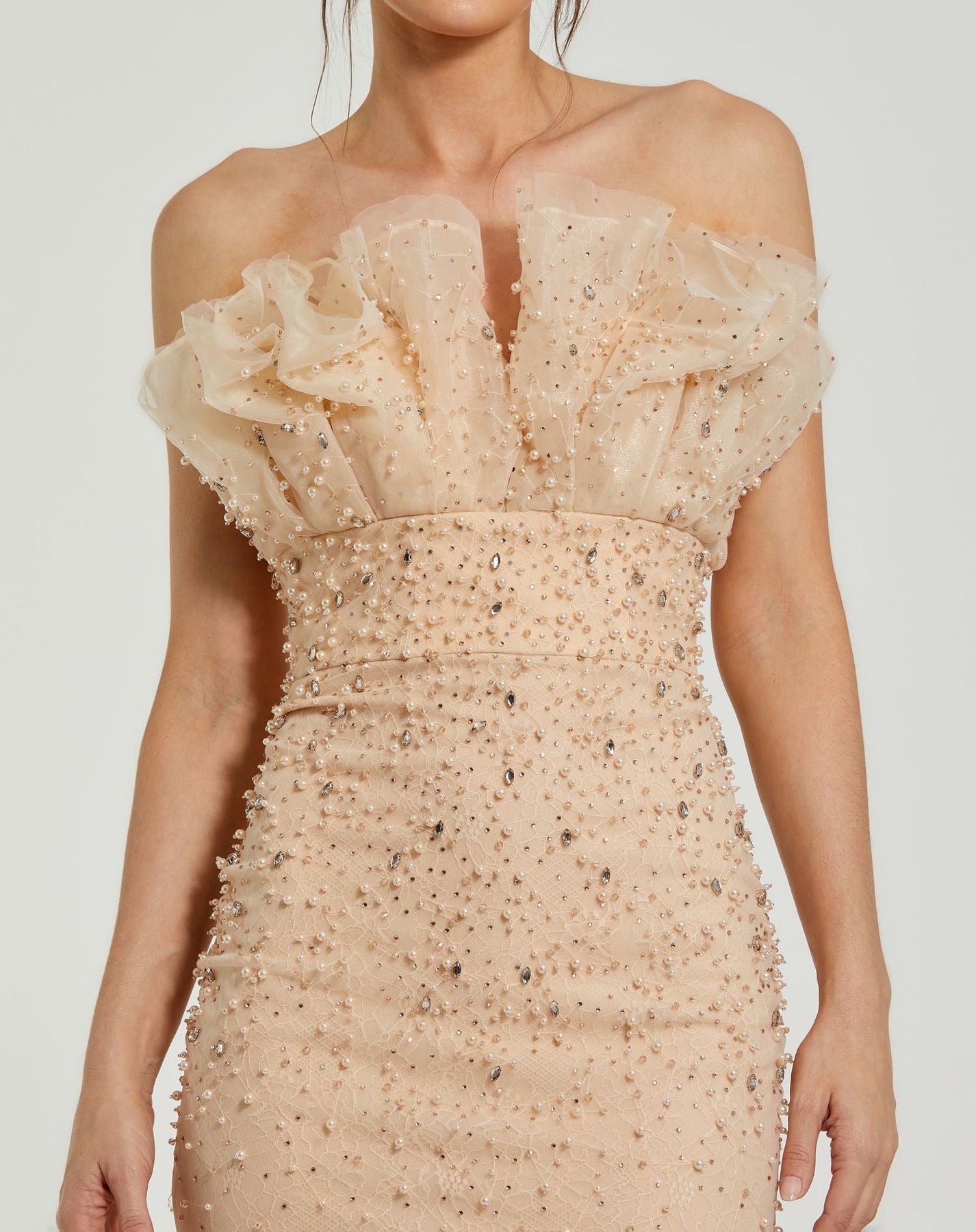 Strapless Embellished Tulle Mermaid Gown