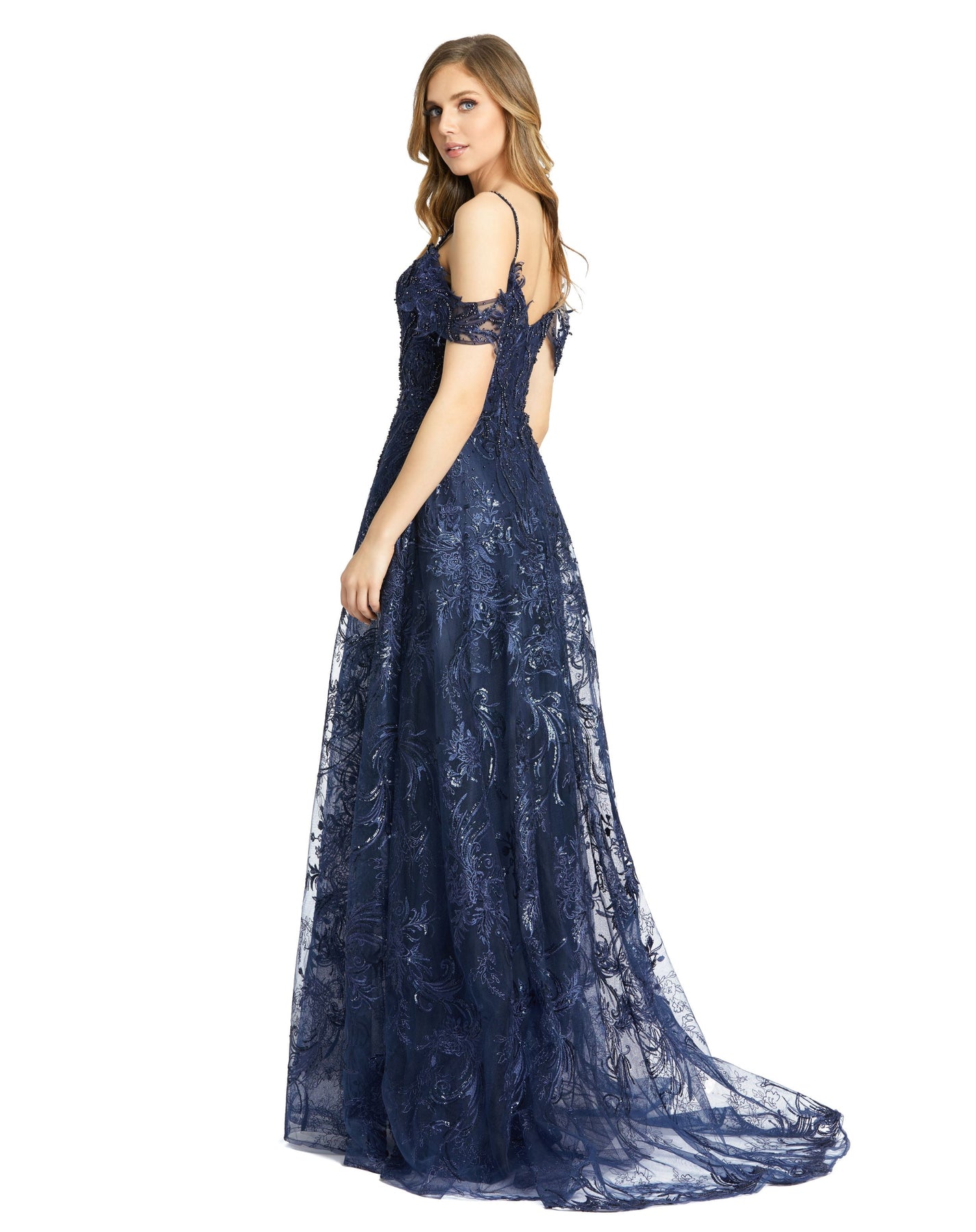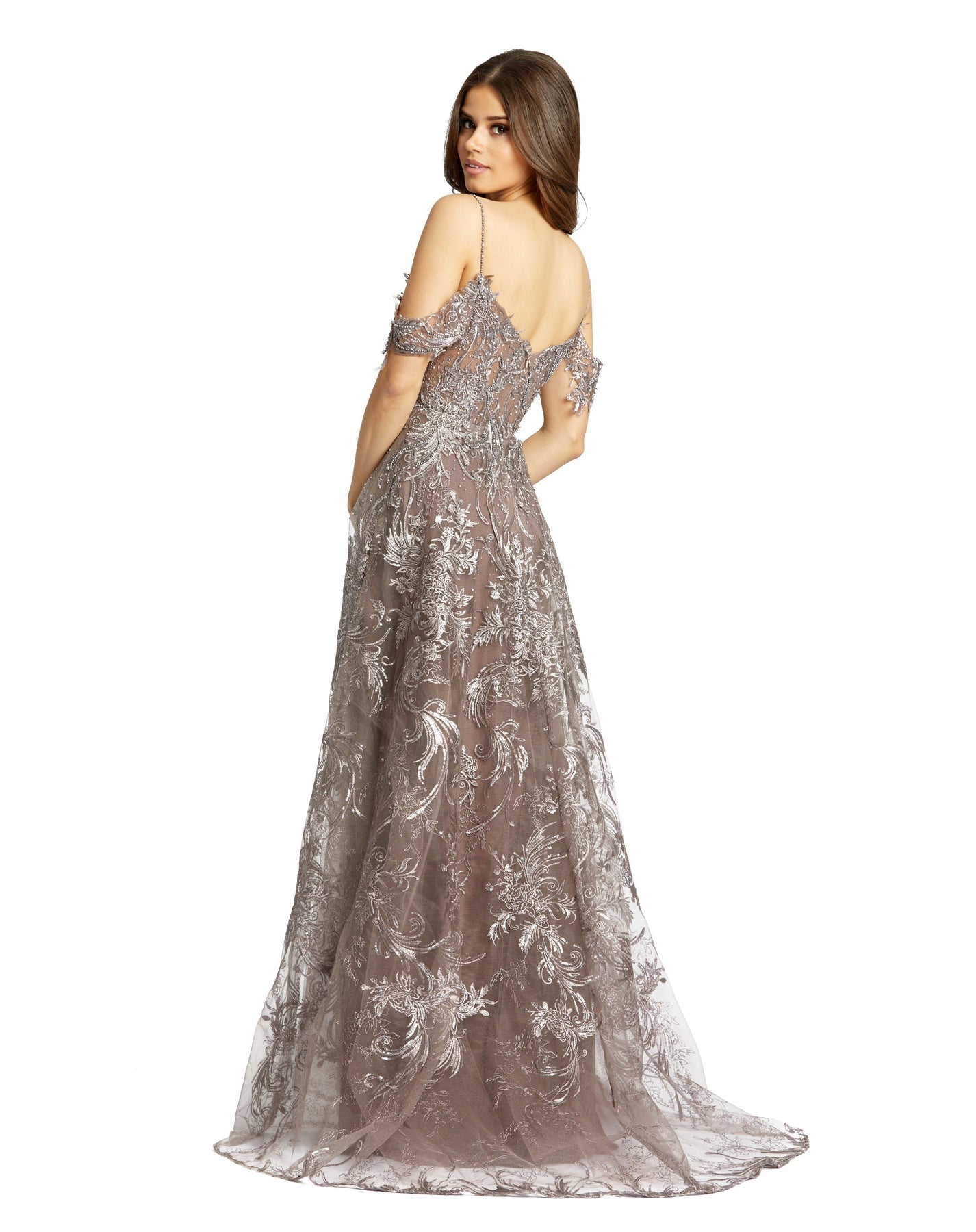 Embellished Cold Shoulder Sweetheart A Line Gown