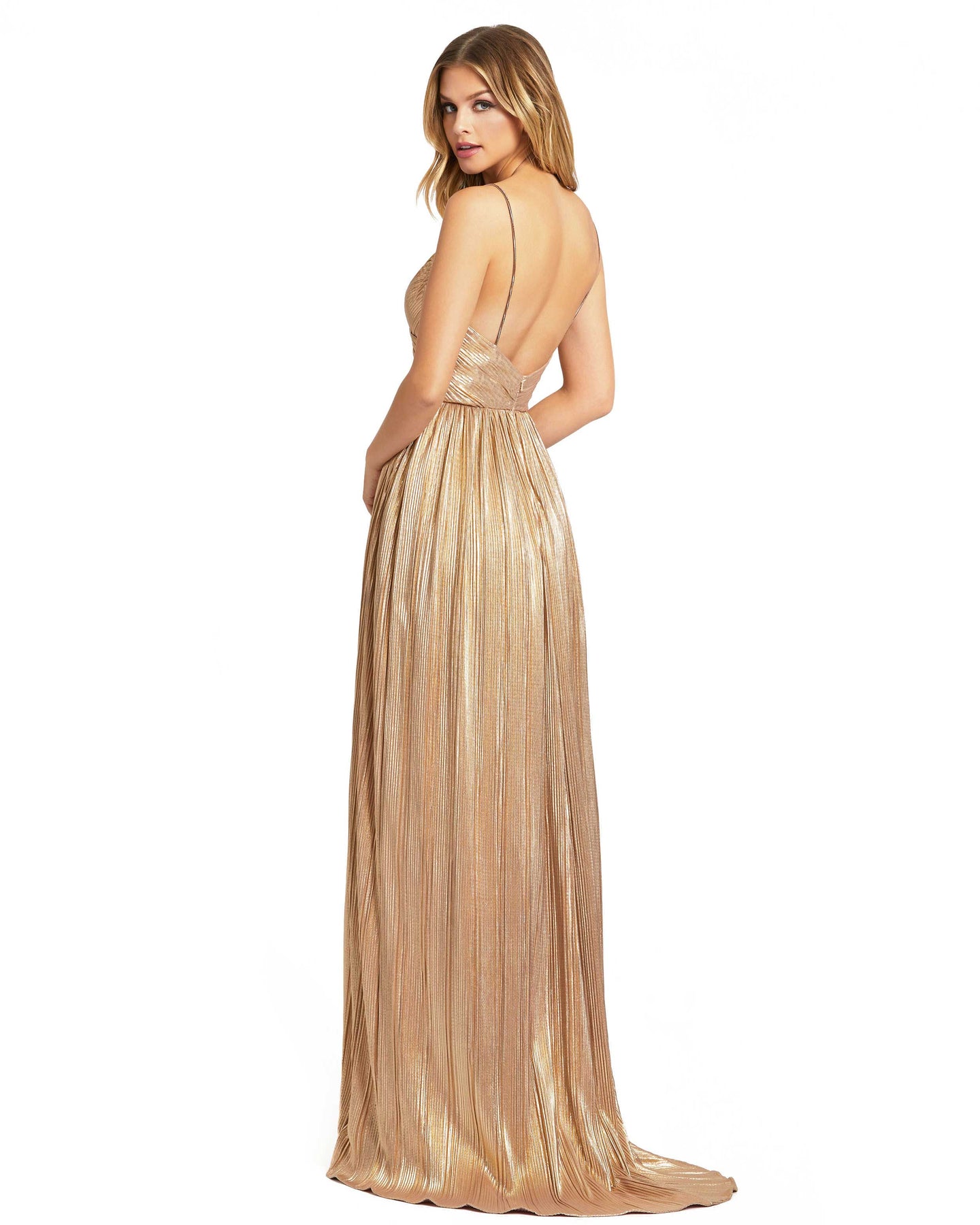 Metallic Ruched A Line Gown