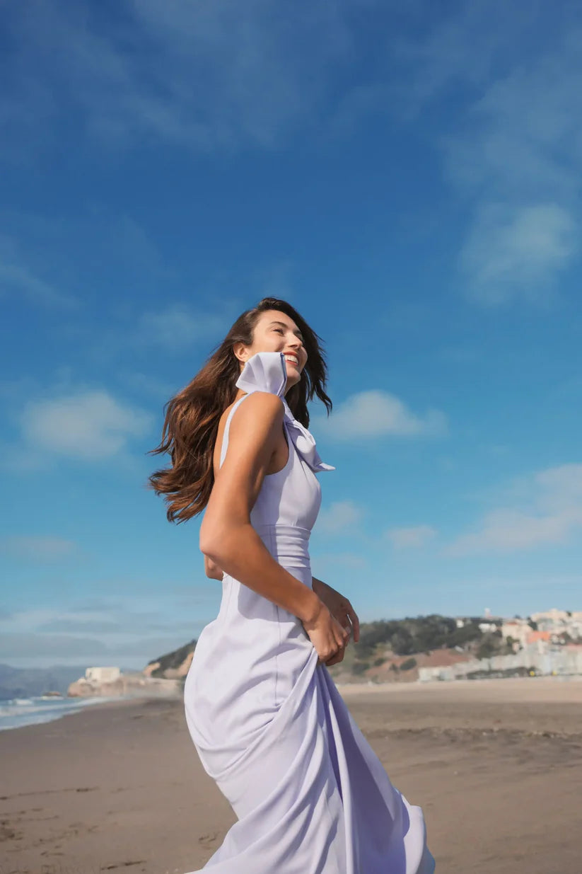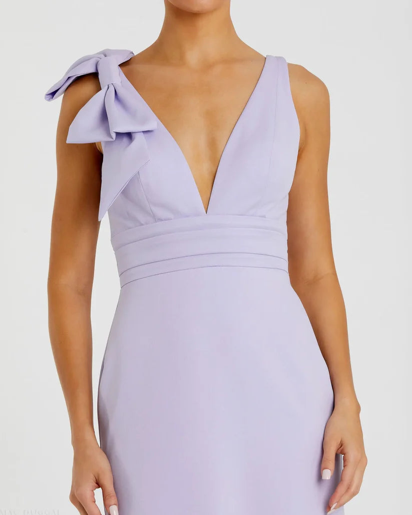 Step into style with our Sleeveless V-Neck Bow Detail Mermaid Gown, the perfect choice for any special occasion. This stunning gown features a flattering sleeveless design, a chic V-neckline, and a striking bow detail that adds a touch of elegance. The mermaid silhouette enhances your figure, making it ideal for weddings, galas, or evening events.