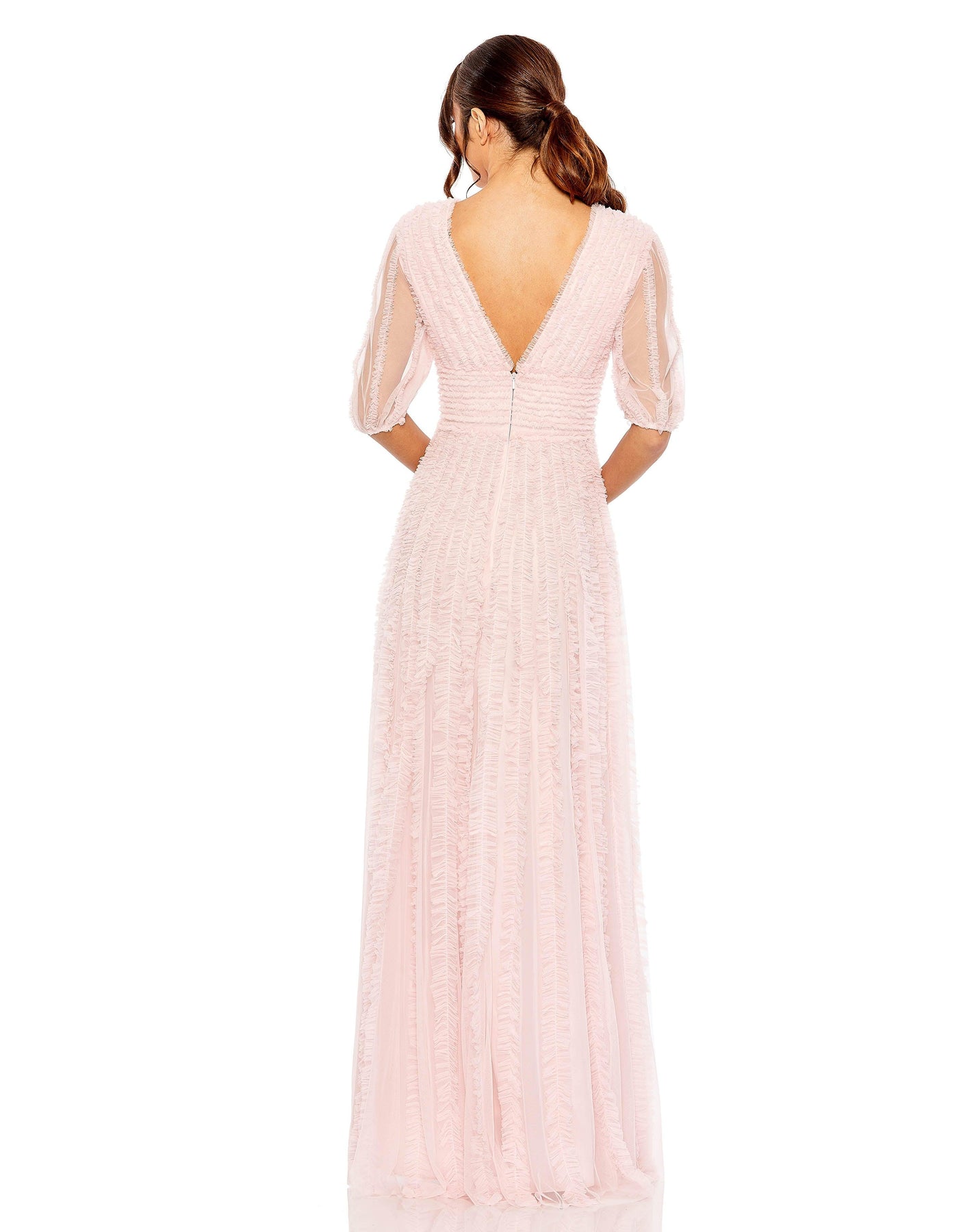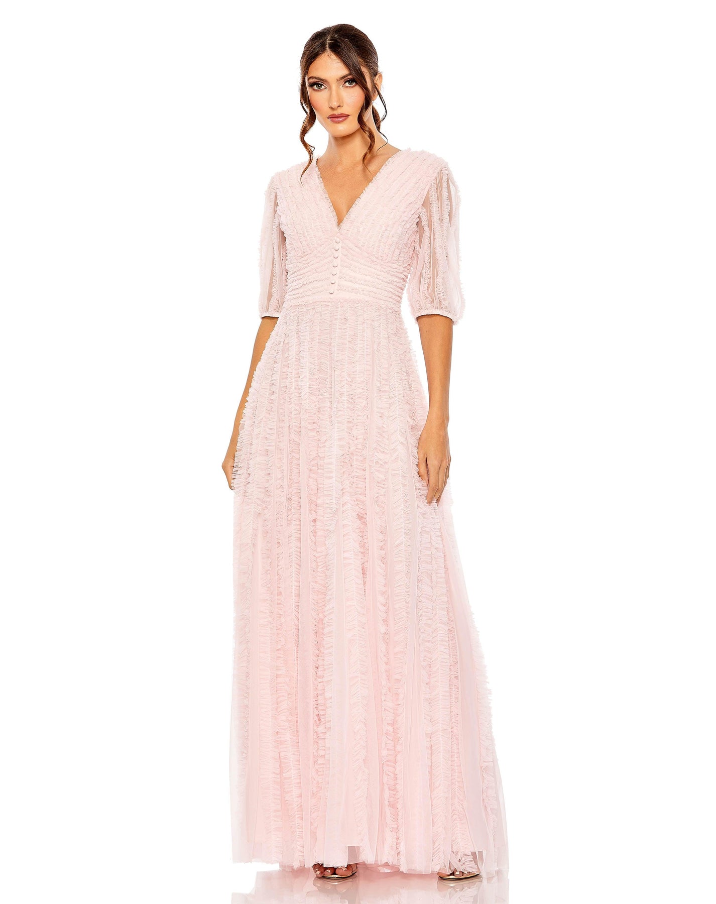 This dress is made for size 18 (plus-size), so don't be shy to show your curves! The Mac Duggal 8050 is perfect for any occasion, with its elegant and flattering design. Plus, the high-quality materials ensure comfort and durability. You'll be the star of the party in this dress!