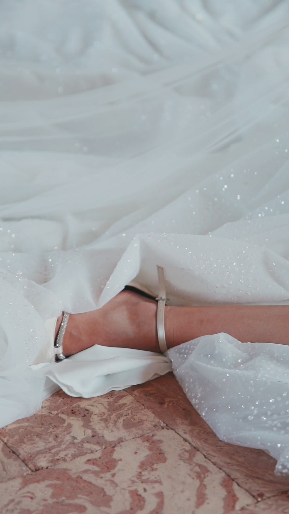 The MARIA ANETTE 5509 Dress is a daring bridal gown featuring a V neckline and an open V backline framed by delicate spaghetti straps. This sleeveless, long-length dress showcases intricate 3D floral appliqués and a high slit for a bold touch. Two long trains extend from the back of the straps, adding dramatic movement and elegance to your unforgettable bridal look.