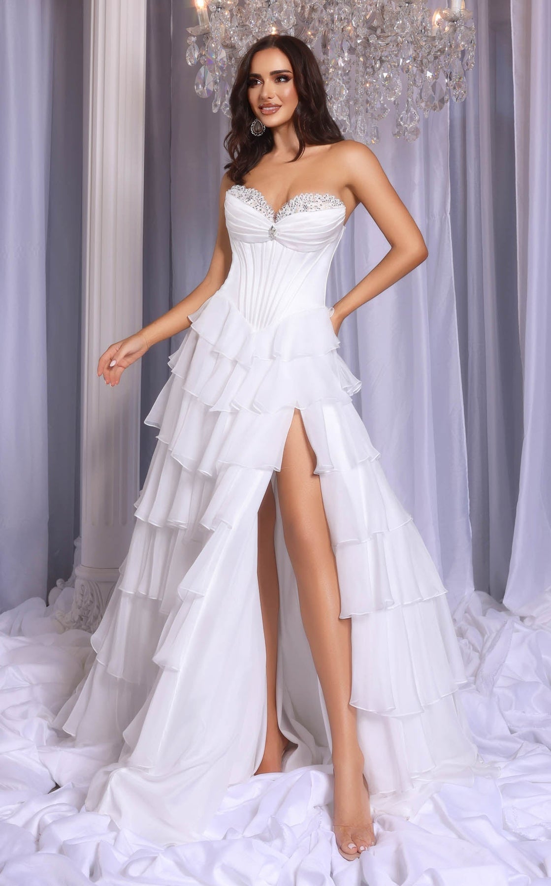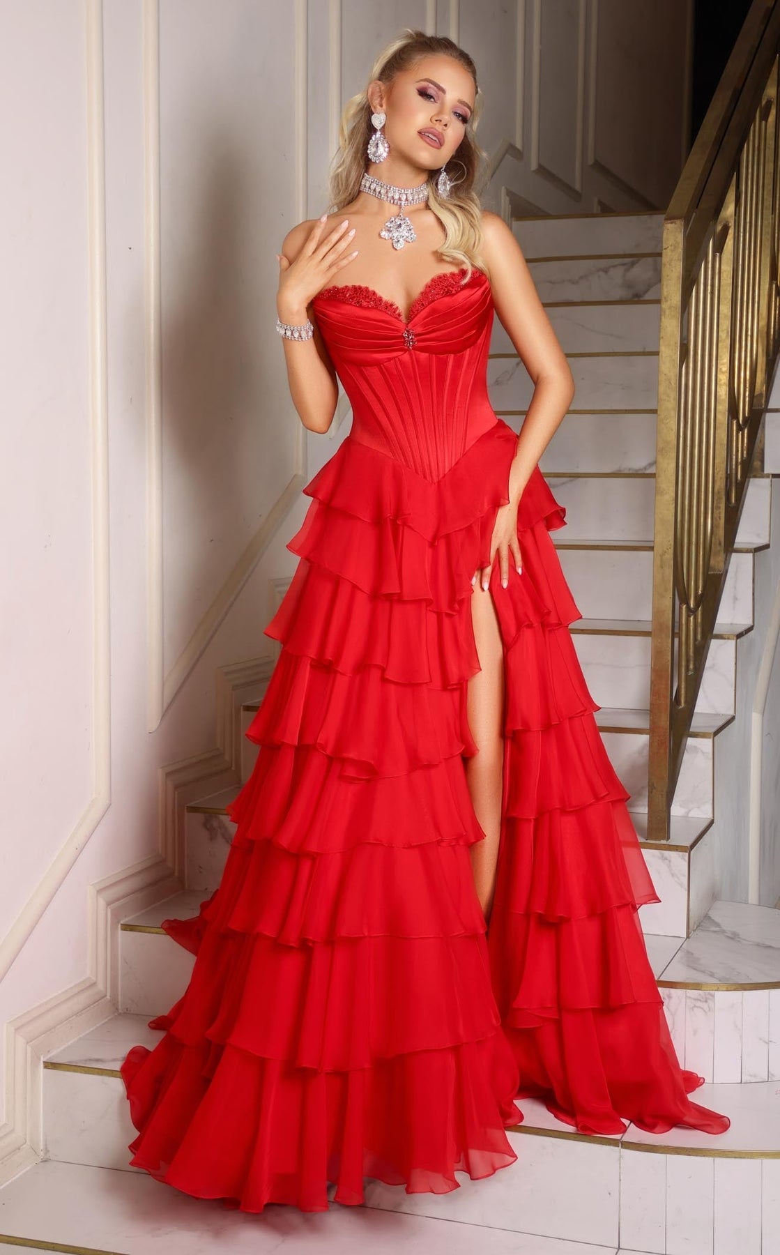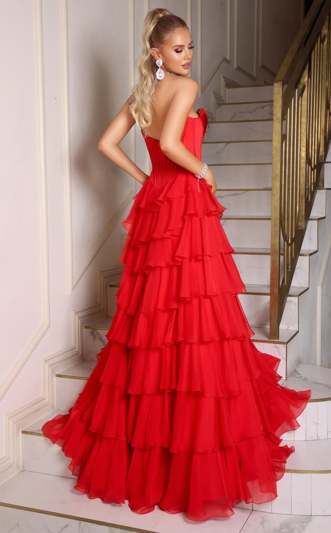 Step into style with the Portia and Scarlett PS25963 Dress. This stunning dress features an elegant off shoulder design and a flattering high slit, perfect for showing off your figure. The open back and sweetheart neckline add a touch of charm to this sophisticated piece.