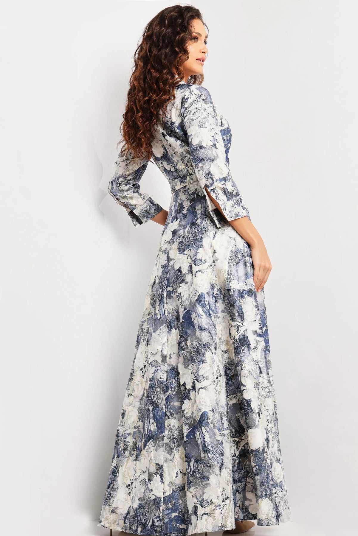 The Jovani 26202 dress combines timeless elegance with modern sophistication, perfect for the mother of the bride. Crafted from luxurious jacquard fabric, this A-line gown flatters every figure while the high waist tie belt accentuates your silhouette. The long skirt features practical pockets for added convenience, making it both stylish and functional. Its full length adds a formal touch ideal for upscale occasions, ensuring you look graceful and confident throughout the event.